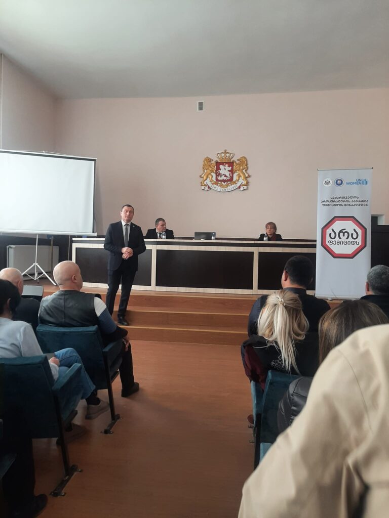 23.03.2023թ Քաղաքապետարանի շենքում տեղի է ունեցել հանրային ծառայողների հանդիպում Ախալքալաք-Նինոծմինդա շրջանային դատախազության դատախազ Վասիլի Օսիձեի և Ախալքալաքի դատախազ Գիորգի Օրջոնիկիձեի հետ գենդերային հավասարության և ընտանեկան բռնության թեմայով, թե ինչ պետք է իմանանք ֆեմիցիդների և ընտանեկան բռնության մասին։